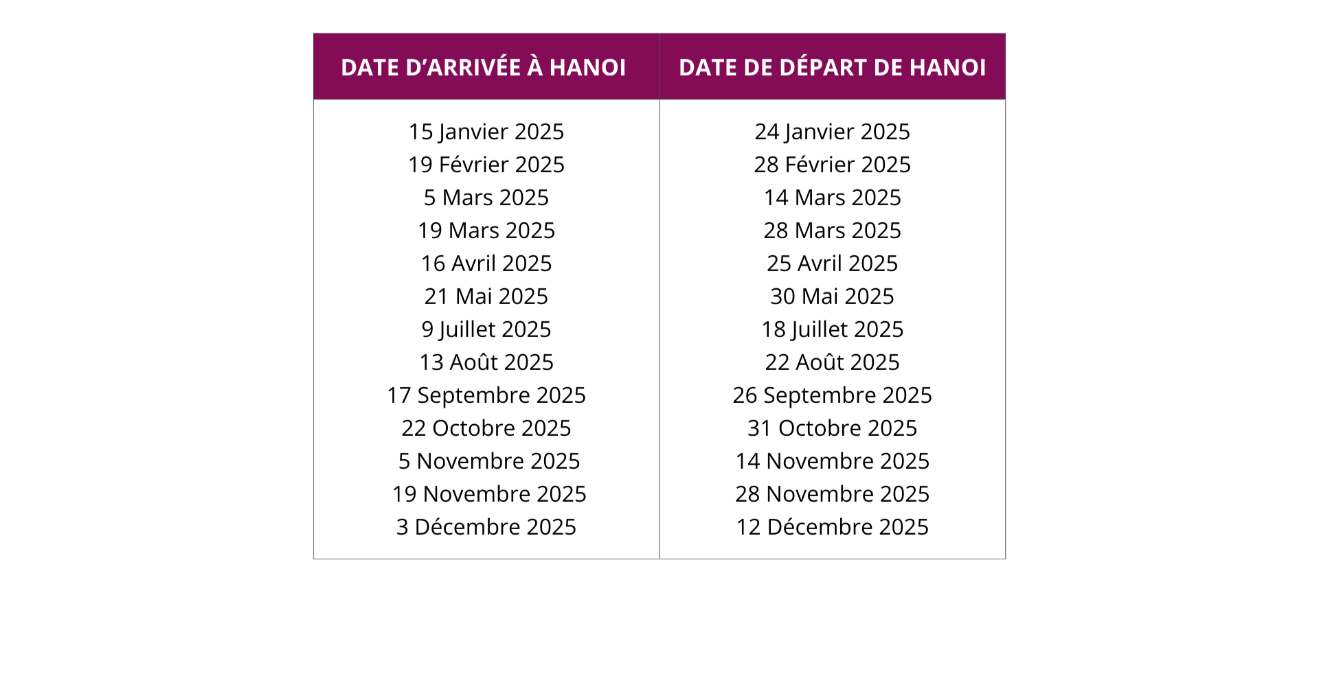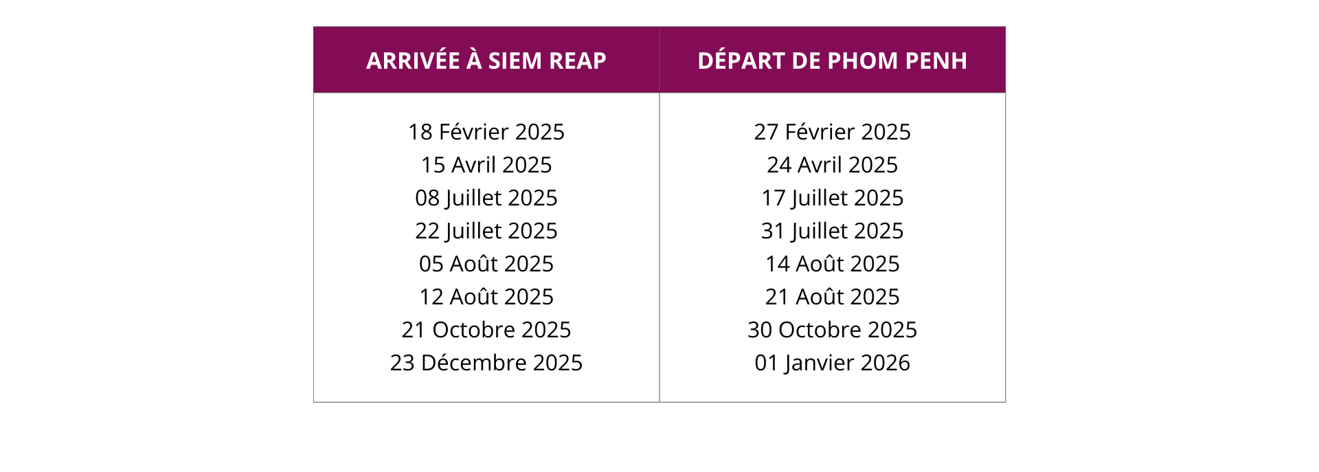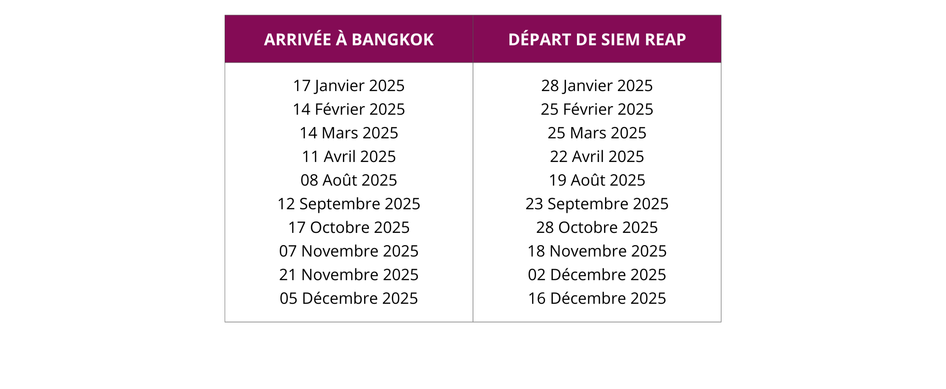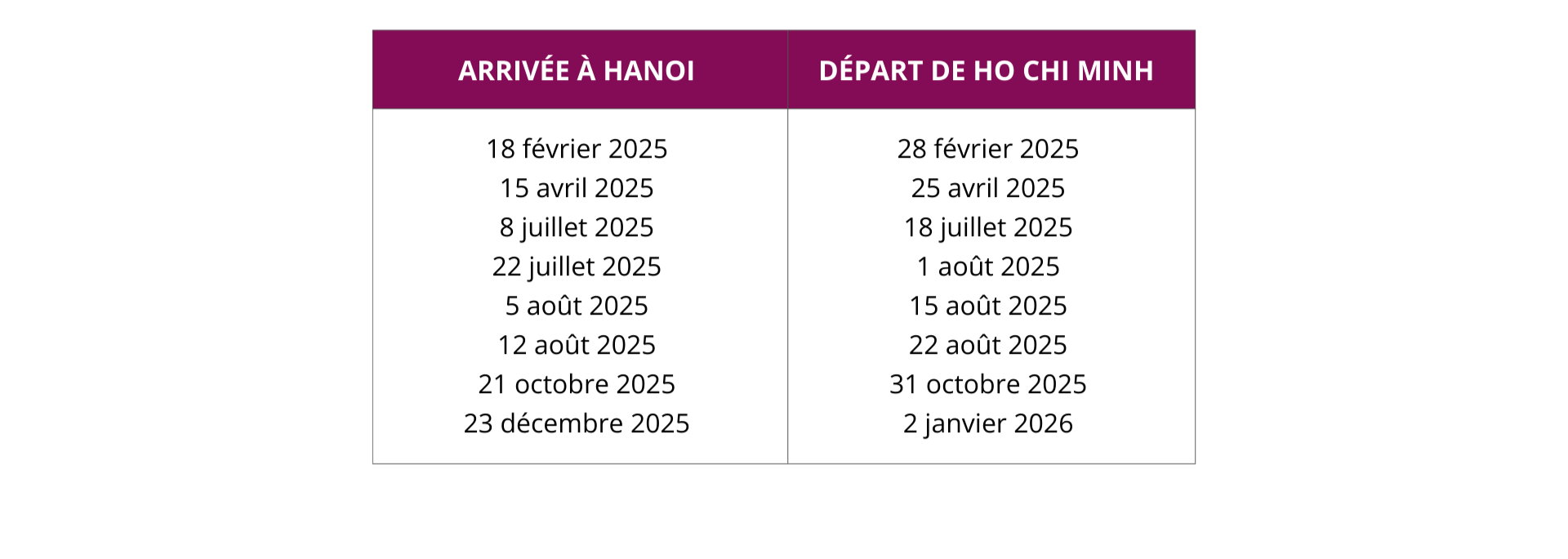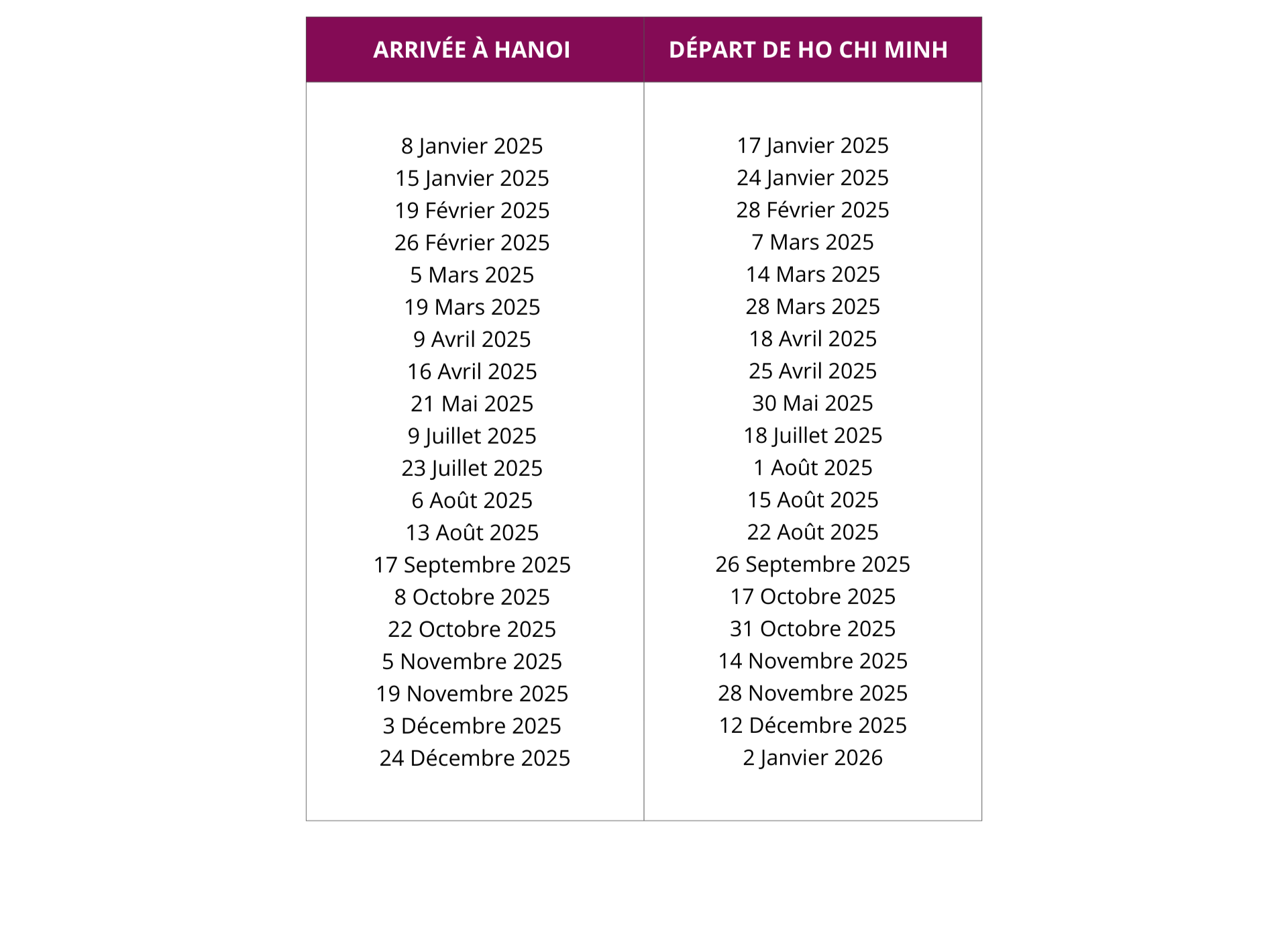 *Départ garanti à partir de 1 personne pendant la haute saison (du 05/1/2025 au 30/04/2025 & du 1/10/2025 au 20/12/2025)