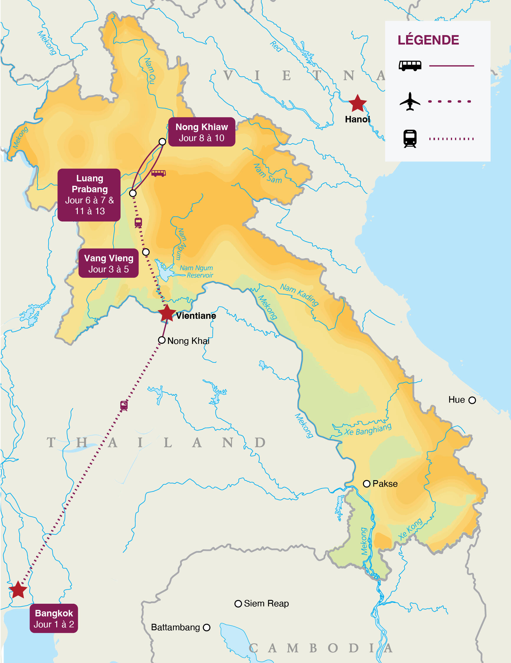 BANGKOK - NONG KHAI - VANG VIENG - LUANG PRABANG - NONG KHIAW