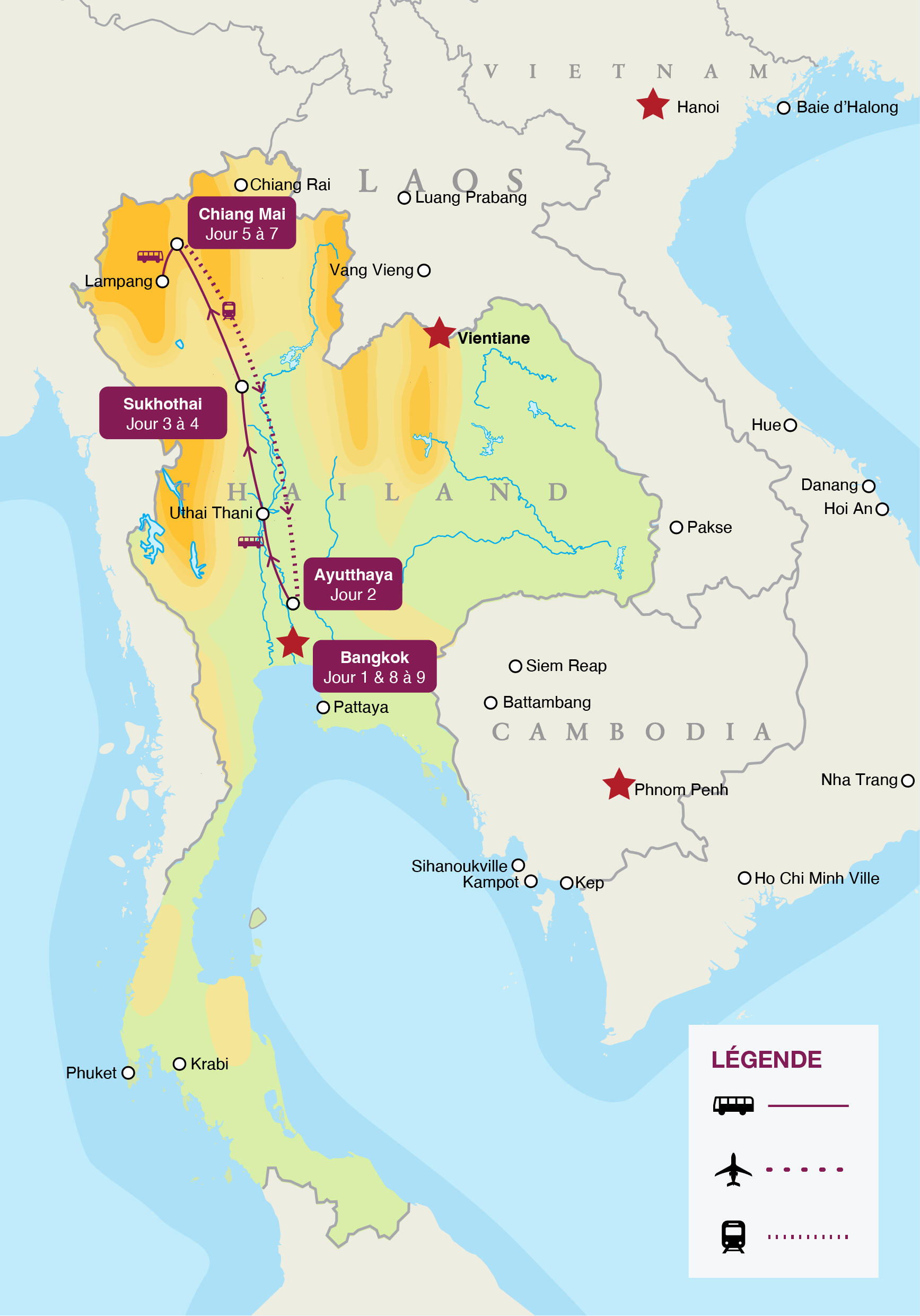 Bangkok – Ayutthaya – Uthai Thani – Sukhothai – Lampang – Chiang Mai