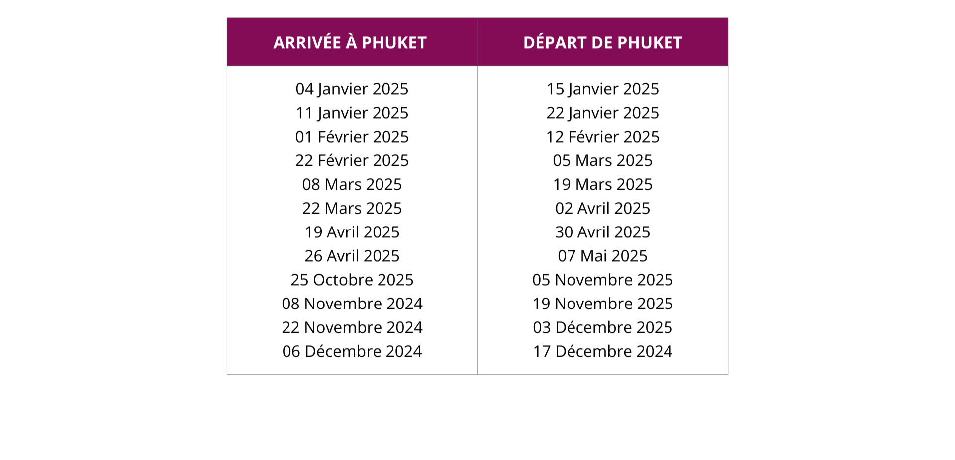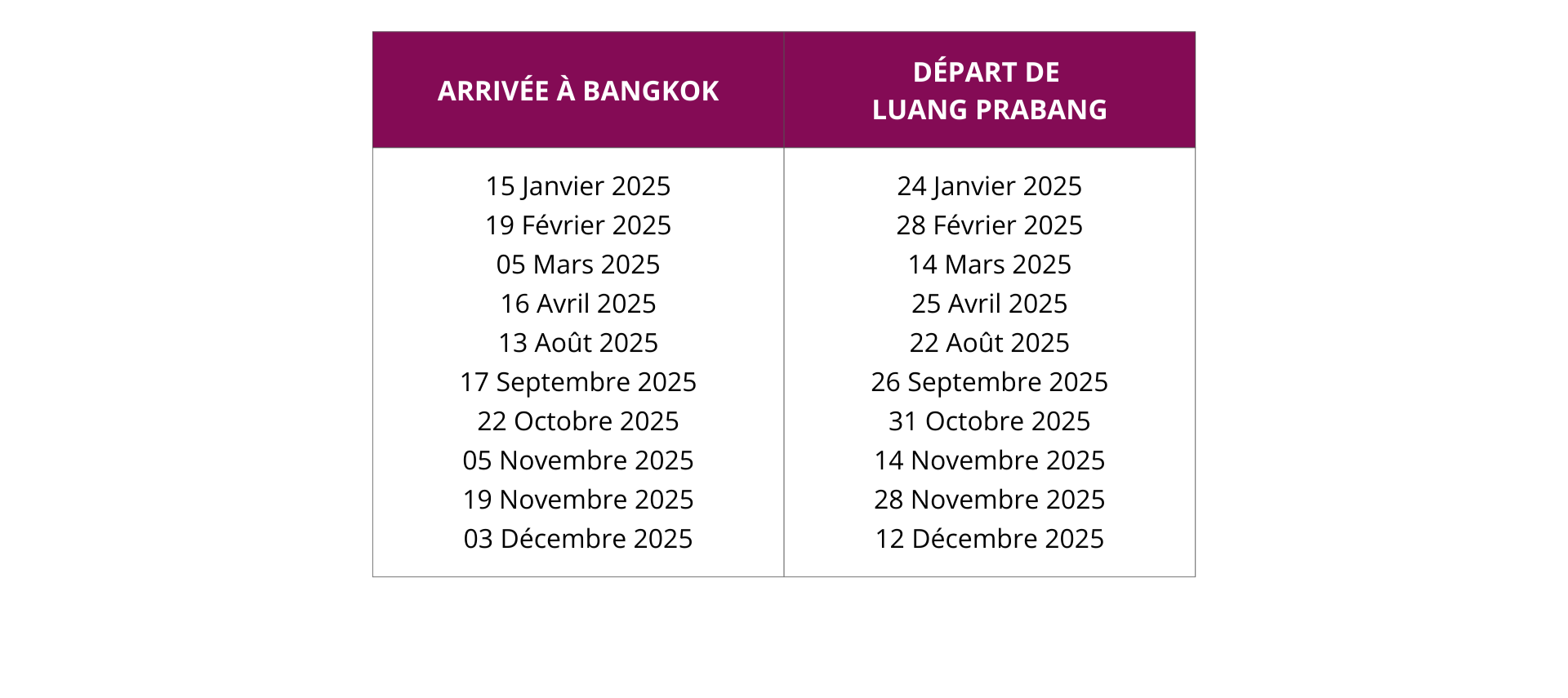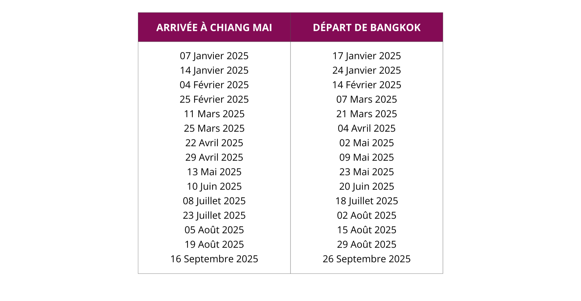 *Départs garantis à partir de 1 personne en haute saison (du 05/01/2025 au 30/04/2025 et du 01/10/2025 au 20/12/2025)