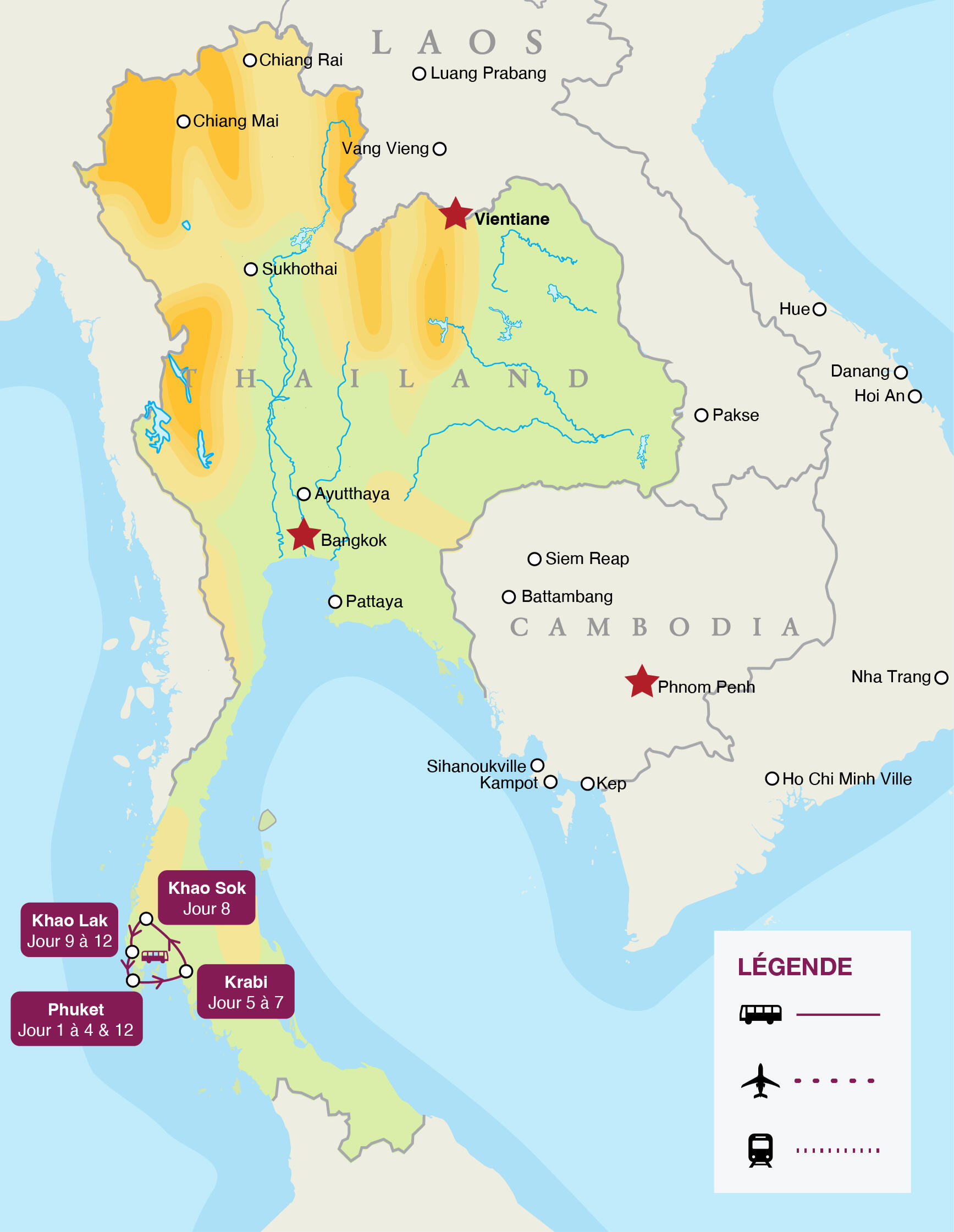 A travers ce magnifique circuit entre terre & mer, vous explorerez les plus beaux trésors du sud de la Thailande ! Parcourez ses lieux mythiques, mais autrement ! Entre Phuket hors des sentiers battus, l’archipel de Krabi par la mer, ou encore Khao Sak, l’une des plus anciennes forêts tropicales du monde abritant une faune et une flore unique, ce voyage au Royaume de Siam ne vous laissera pas indifférent !