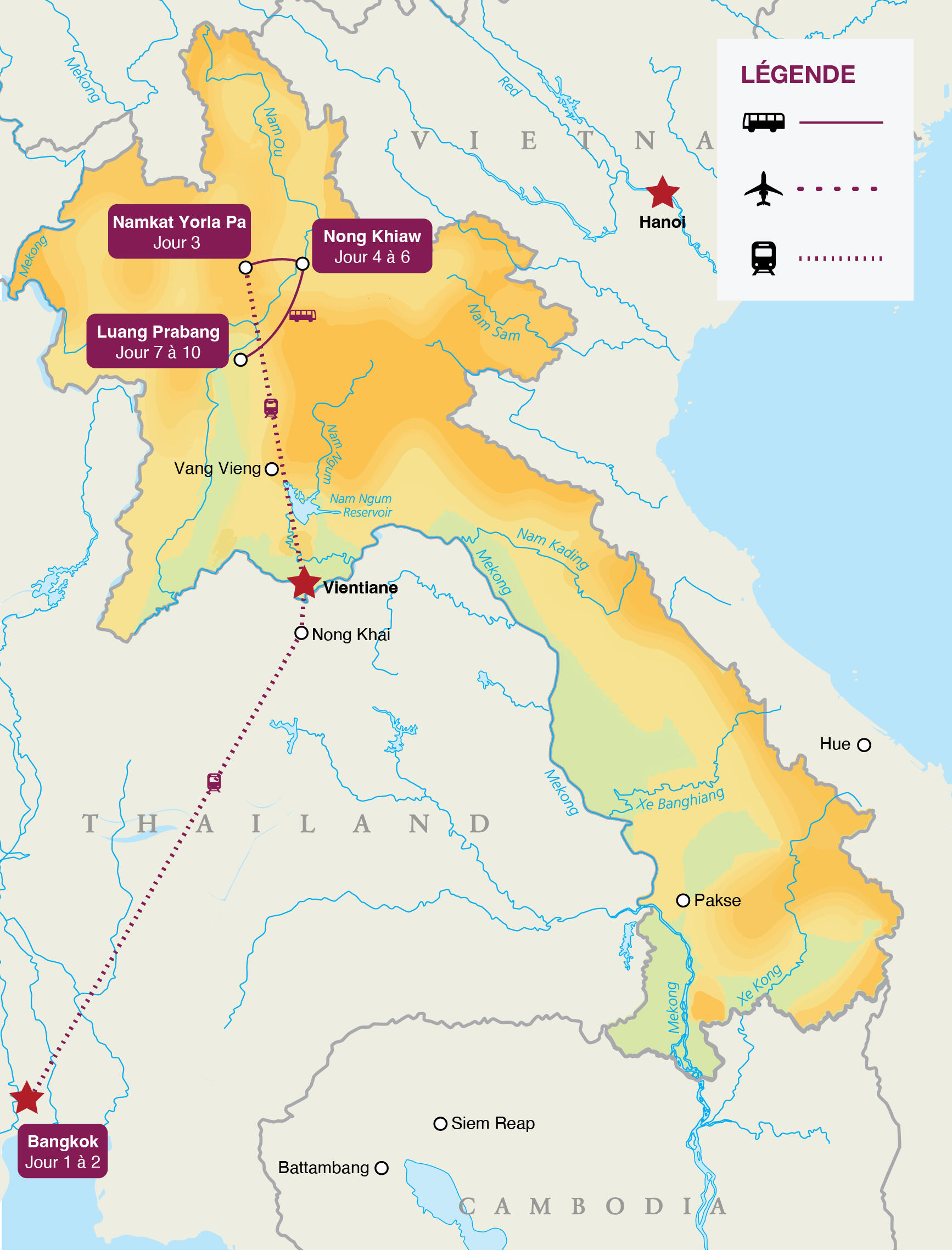 BANGKOK - NONG KHAI - VIENTIANE - OUDOMXAY - NONG KHIAW - LUANG PRABANG